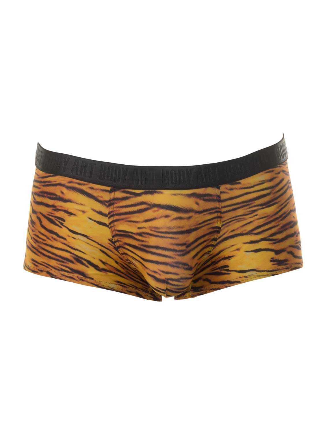 De Hades minipant is stoer en uitdagend met zijn opvallende tijgerprint. De Hades is beschikbaar in een dessert kleur en zilver grijs. De stof is gemaakt van zacht en comfortabel microfiber, wat nauw aansluit op de huid. Door de dunne stof draag je de minipants vrijwel vrijwel onzichtbaar onder strakke kleding. De minipant heeft een labeltje met het Body art logo gecentreerd op de voorzijde van de smalle elastische heupband.