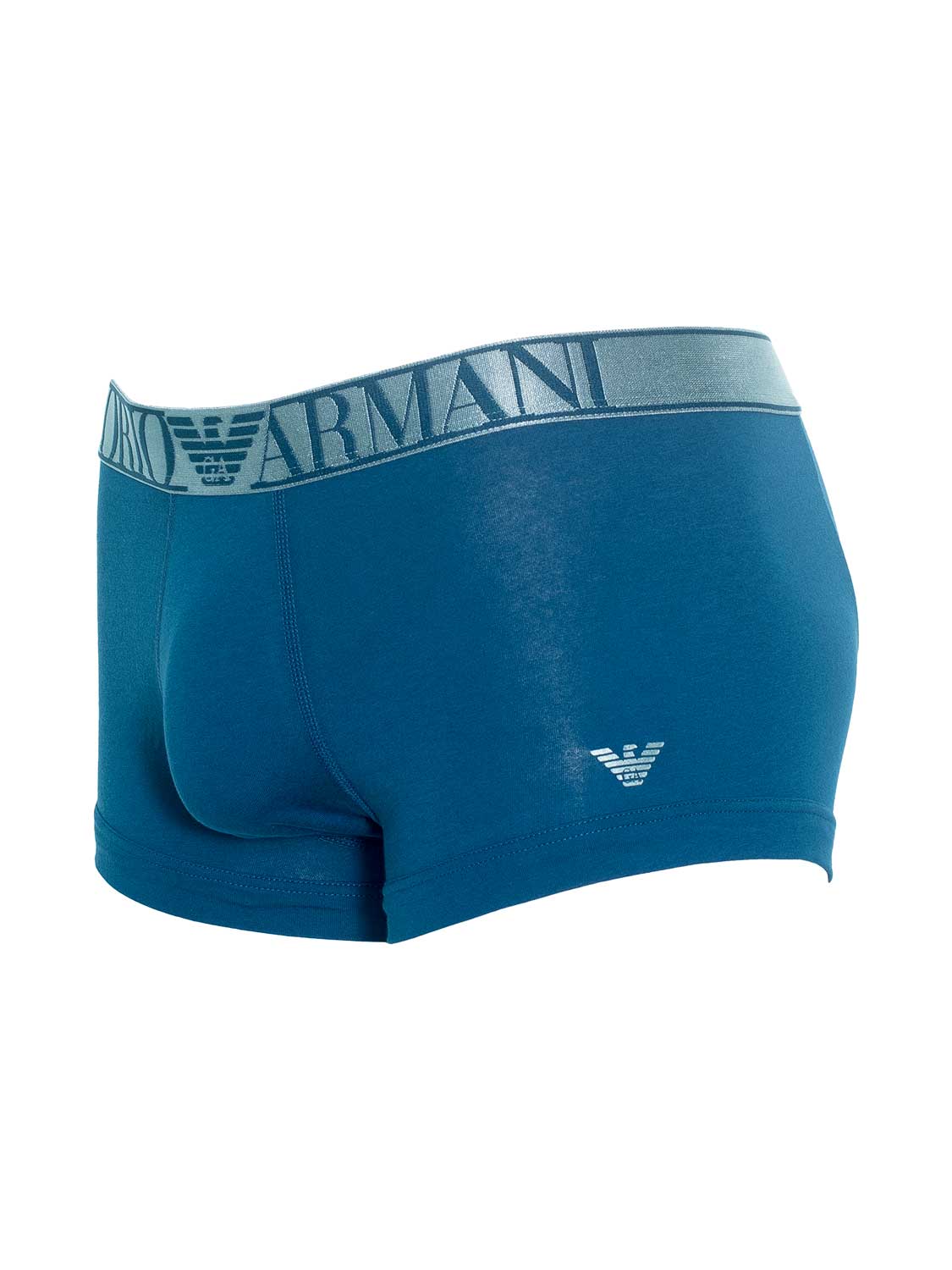 Deze trunk van Emporio Armani gemaakt van stretch katoen met een iriserende tailleband met het Emporio Armani logo, voor een chique opvallende look. De trunk heeft korte pijpjes en heeft een comfortabele snit met extra ondersteuning voor de billen. Deze luxe trunk siert zich door eenvoud door de uitvoering in een unikleur met links voor in het klein het Armani logo.