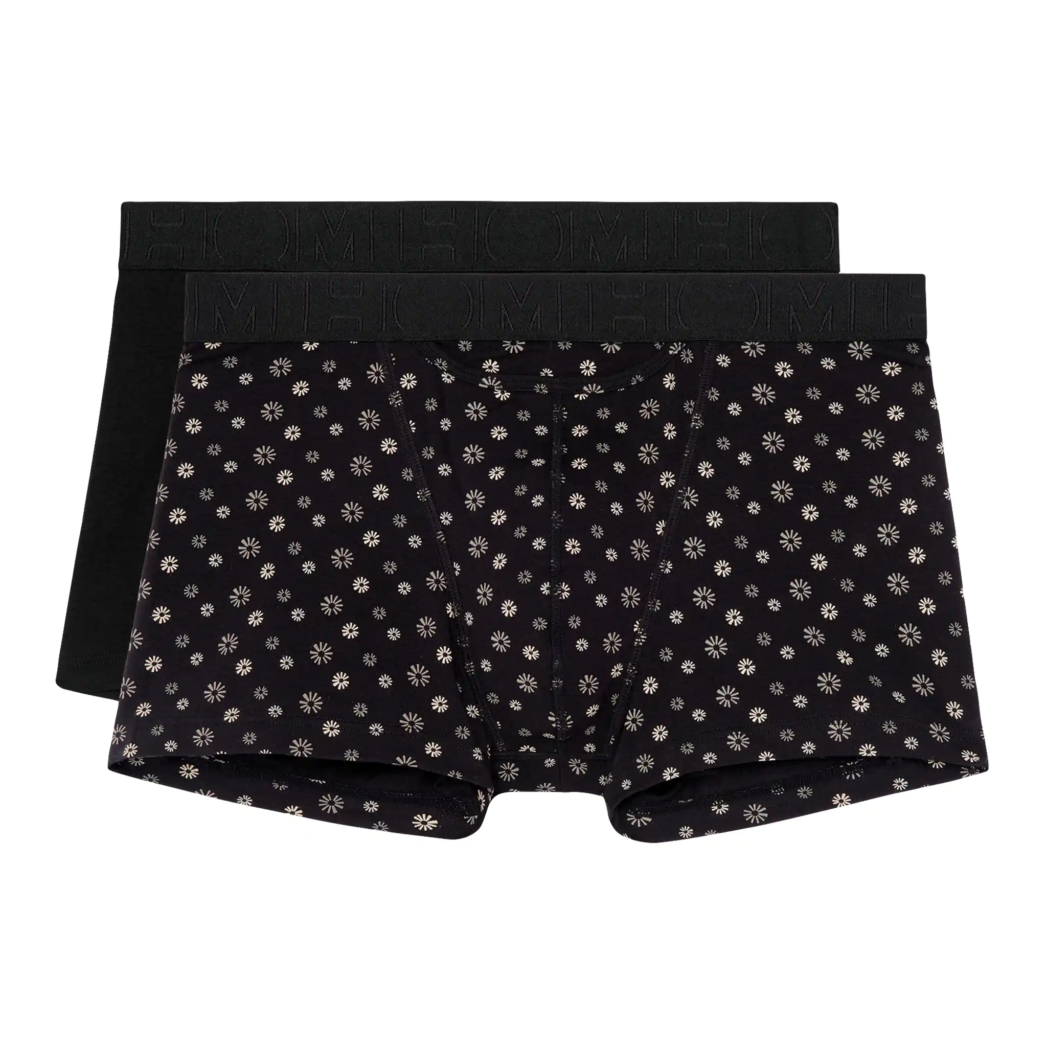 2 Boxers Briefs in een voordelige 2-pack uitgevoerd met de horizontale gulp waar HOM bekend om staat, voor extra gemak en comfort. Deze HO1 boxers zijn onderdeel van de Boxerlines serie en gemaakt van gekamd stretch katoen. Deze multi-pack bestaat uit een boxer in de kleur zwart en een boxer met een subtiele bloemenprint in de kleur grijs op een zwarte achtergrond. De heren boxers zijn geschikt voor dagelijks gebruik en uitgevoerd met een pouch aan de voorzijde, voor extra ondersteuning en comfort. De Boxerlines serie is gemaakt van een lichtere kwaliteit katoen dan de singlepacks.