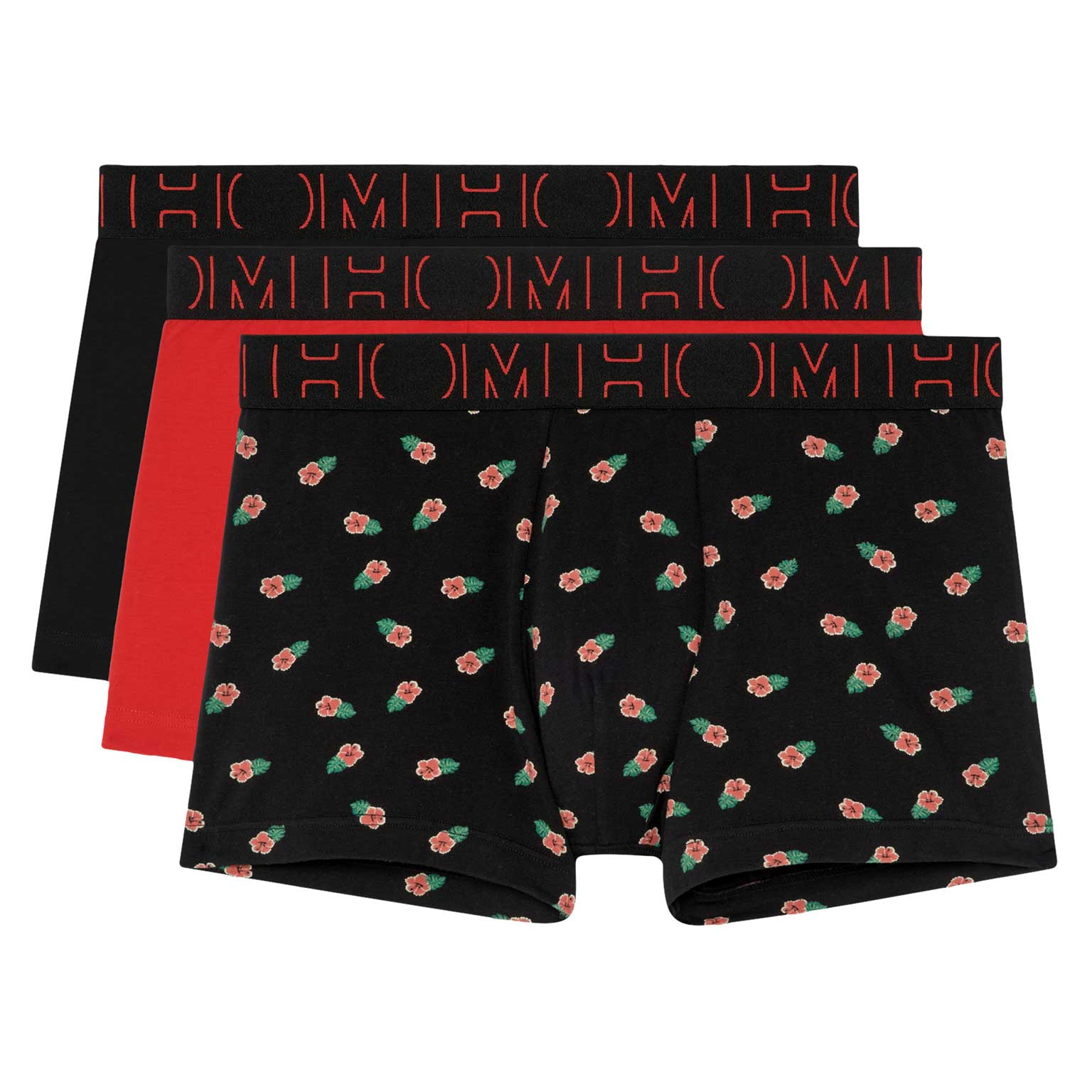 Boxer Briefs in een voordelige multi-pack gemaakt van 95/5 stretch katoen voor een goede pasvorm. De boxer set is onderdeel van de boxerlines serie en gemaakt van gekamd katoen. Deze multi-pack beschikt over drie boxers met een zwarte heupband en het HOM logo in rode letters, waarvan één boxer met een fleurige bloemen print op een zwarte achtergrond en de andere twee boxers in rood en zwart. Deze heren boxers zijn geschikt voor dagelijks gebruik en uitgevoerd met een pouch aan de voorzijde voor extra ondersteuning en comfort. De boxerlines serie is gemaakt van lichter katoen dan de single-packs, waardoor deze minder lang mee gaan.