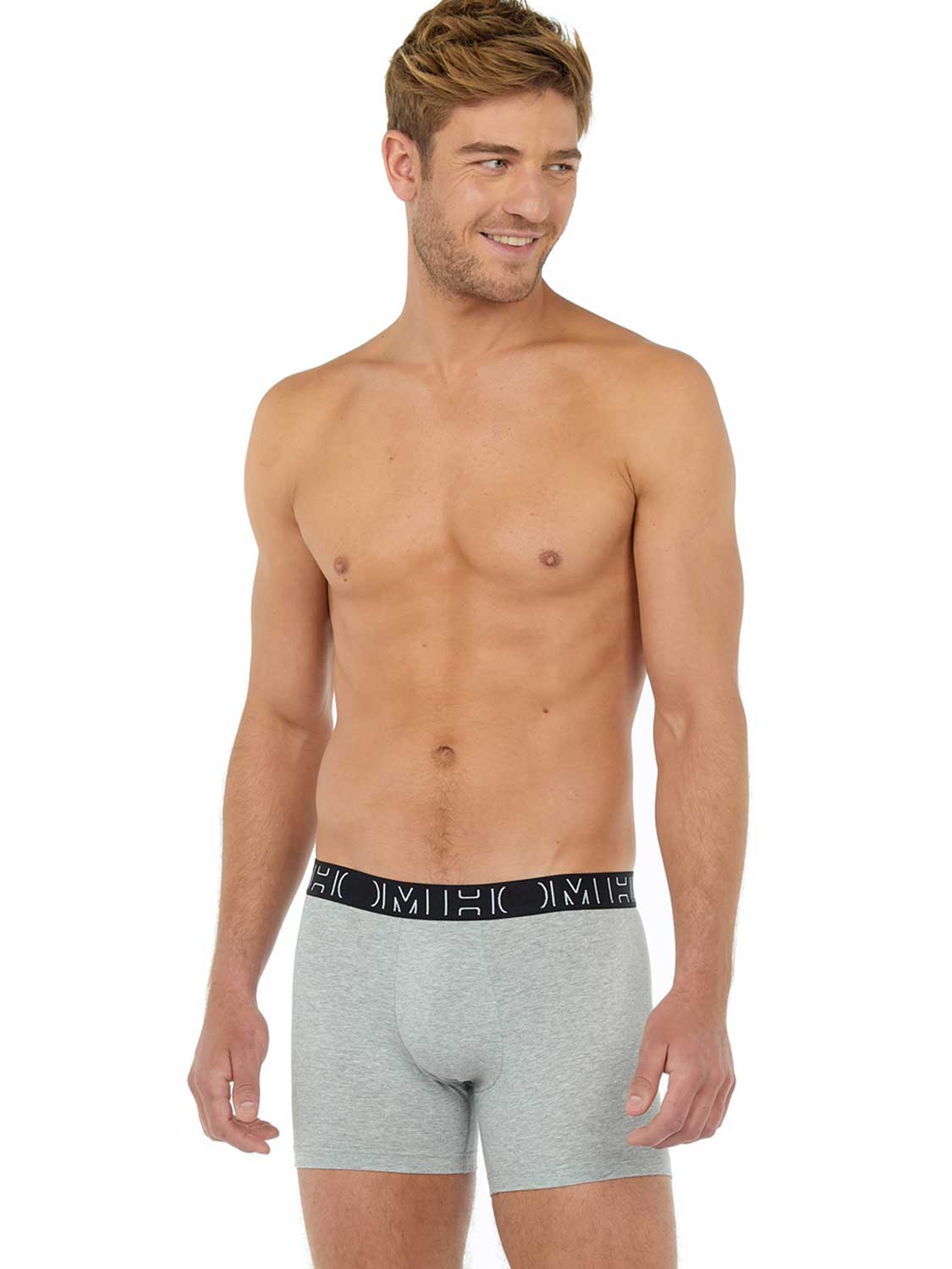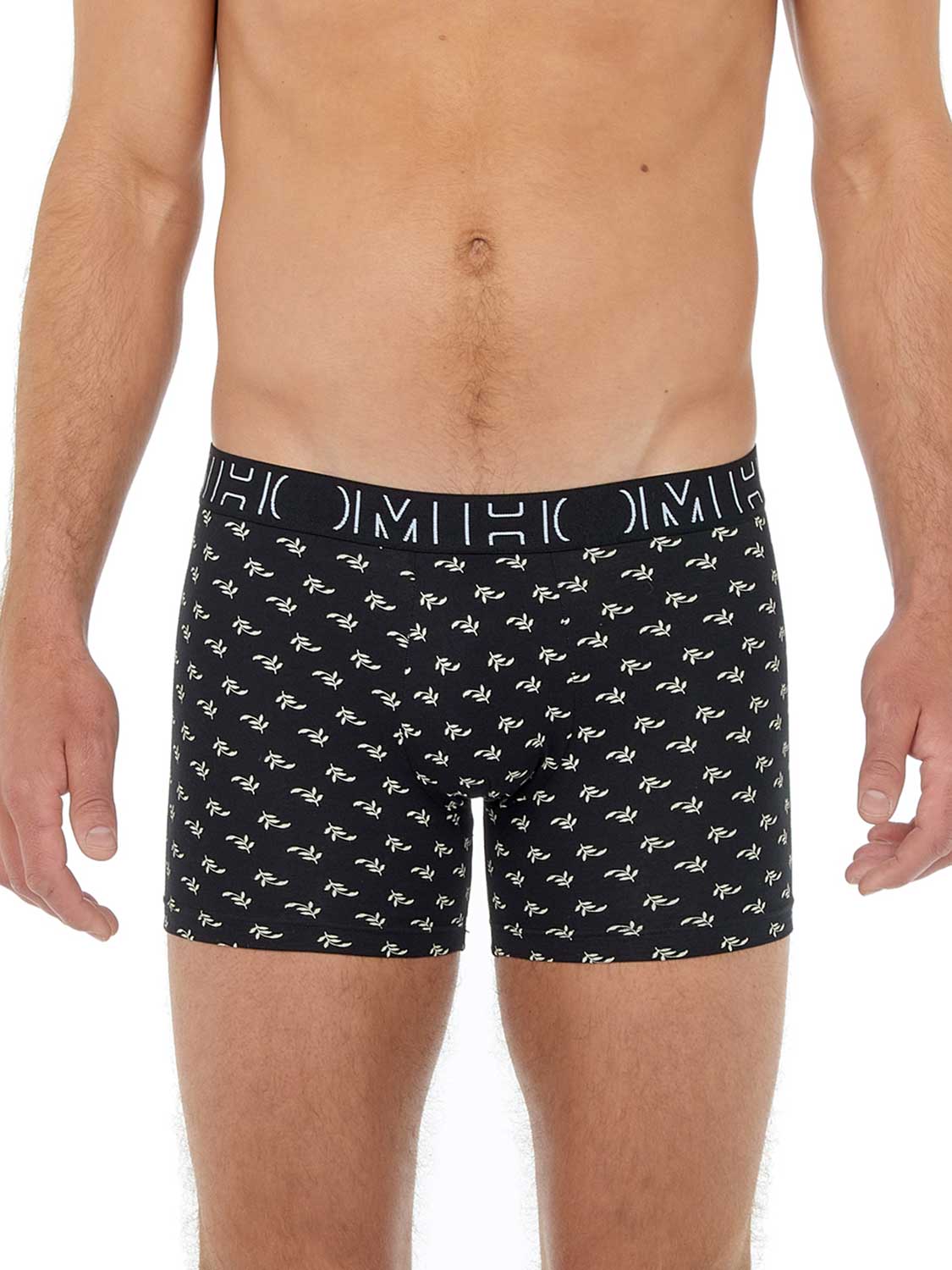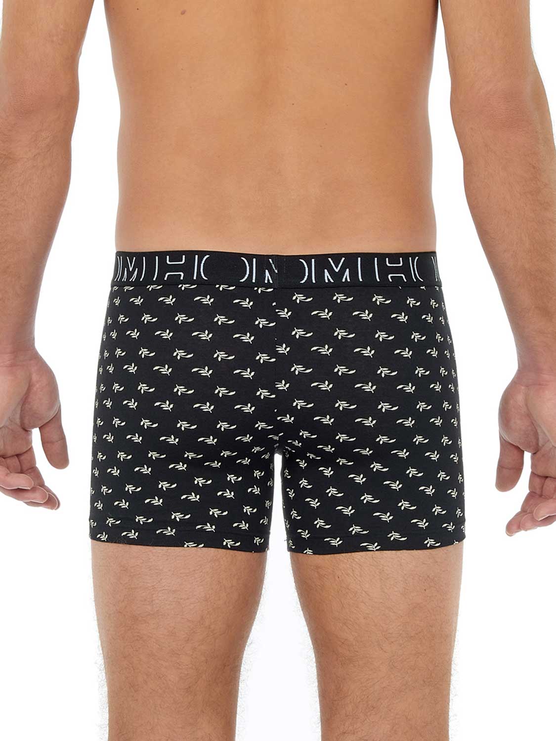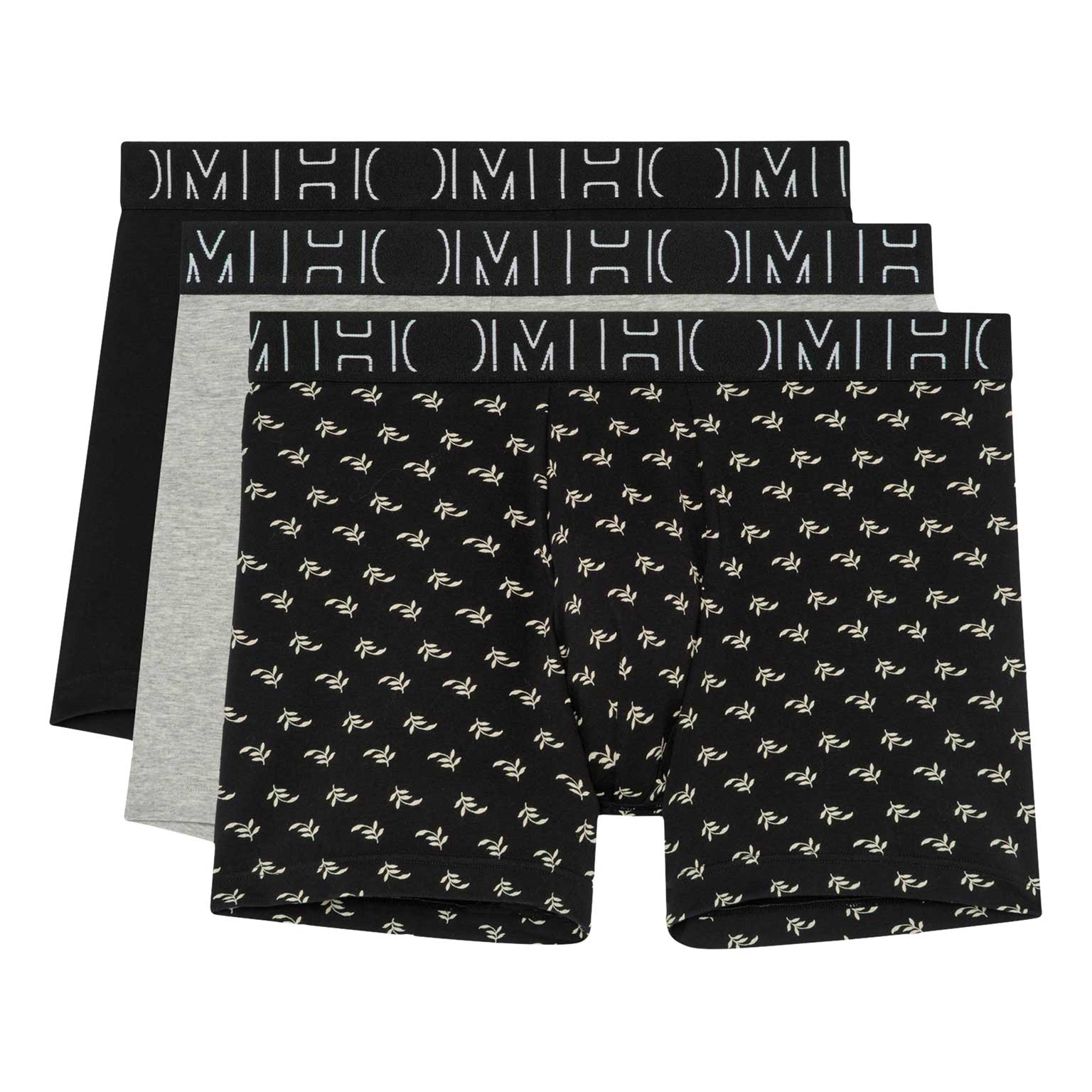 Long - Boxers in een voordelige multi-pack gemaakt van 95/5 stretch katoen voor een goede pasvorm. Deze boxer set is onderdeel van de boxerlines serie en gemaakt van gekamd katoen. Deze multi-pack beschikt over drie boxers met langere pijpen dan de reguliere boxer briefs. De boxers hebben zwarte heupband met het HOM logo, waarvan één boxer met een elegantie blader print op een zwarte achtergrond en de andere twee boxers in zwart en grijs. Deze heren boxers zijn geschikt voor dagelijks gebruik en uitgevoerd met een pouch aan de voorzijde voor extra ondersteuning en comfort. De boxerlines serie is gemaakt van lichter katoen dan de single-packs, waardoor deze minder lang mee gaan.