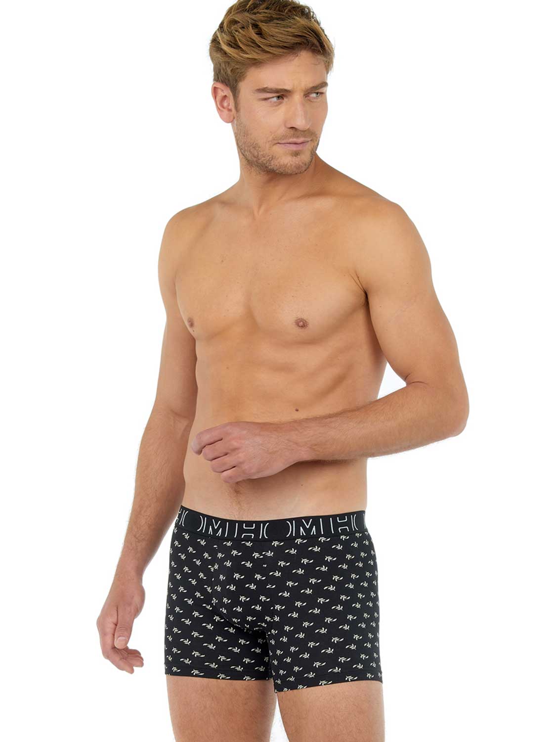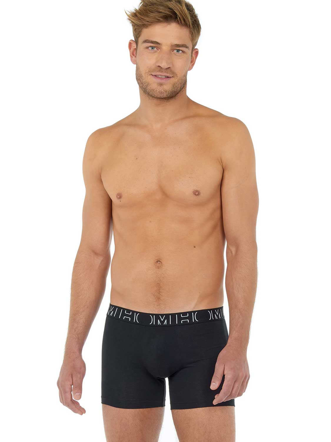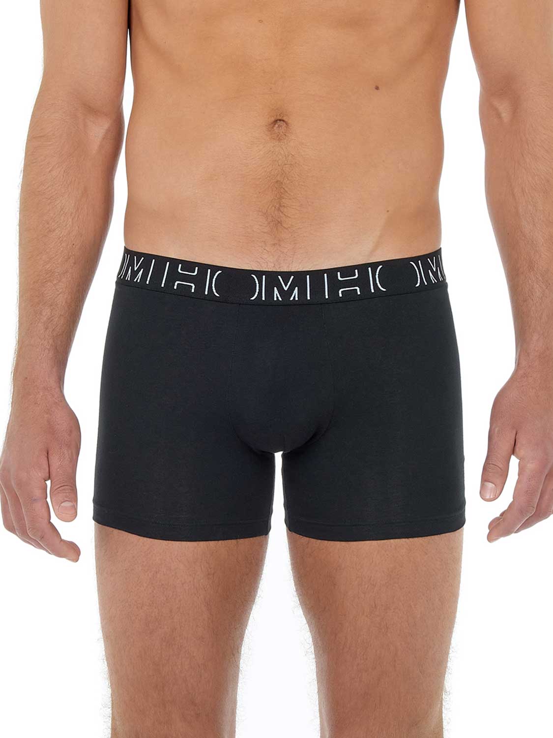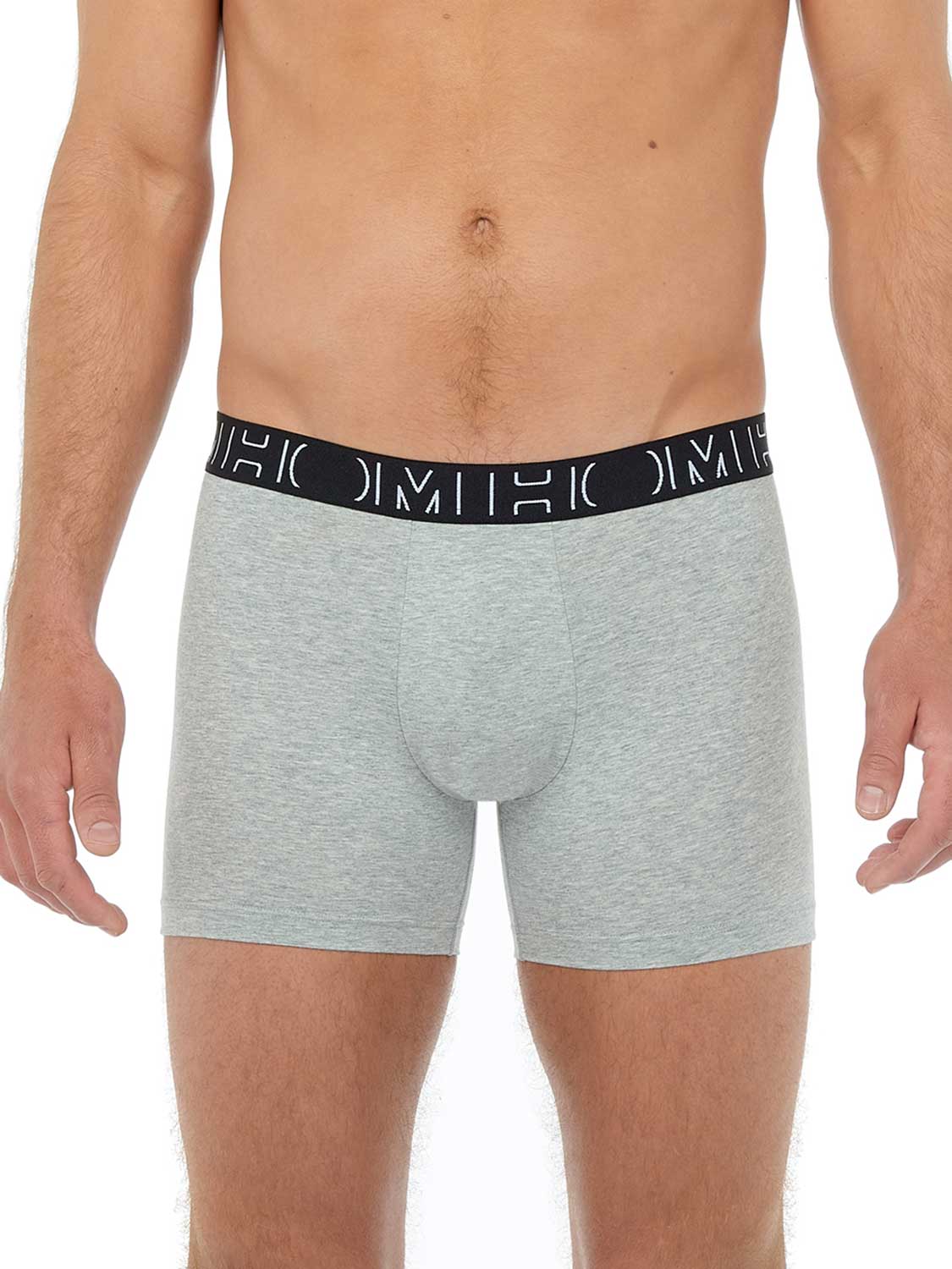 Long - Boxers in een voordelige multi-pack gemaakt van 95/5 stretch katoen voor een goede pasvorm. Deze boxer set is onderdeel van de boxerlines serie en gemaakt van gekamd katoen. Deze multi-pack beschikt over drie boxers met langere pijpen dan de reguliere boxer briefs. De boxers hebben zwarte heupband met het HOM logo, waarvan één boxer met een elegantie blader print op een zwarte achtergrond en de andere twee boxers in zwart en grijs. Deze heren boxers zijn geschikt voor dagelijks gebruik en uitgevoerd met een pouch aan de voorzijde voor extra ondersteuning en comfort. De boxerlines serie is gemaakt van lichter katoen dan de single-packs, waardoor deze minder lang mee gaan.