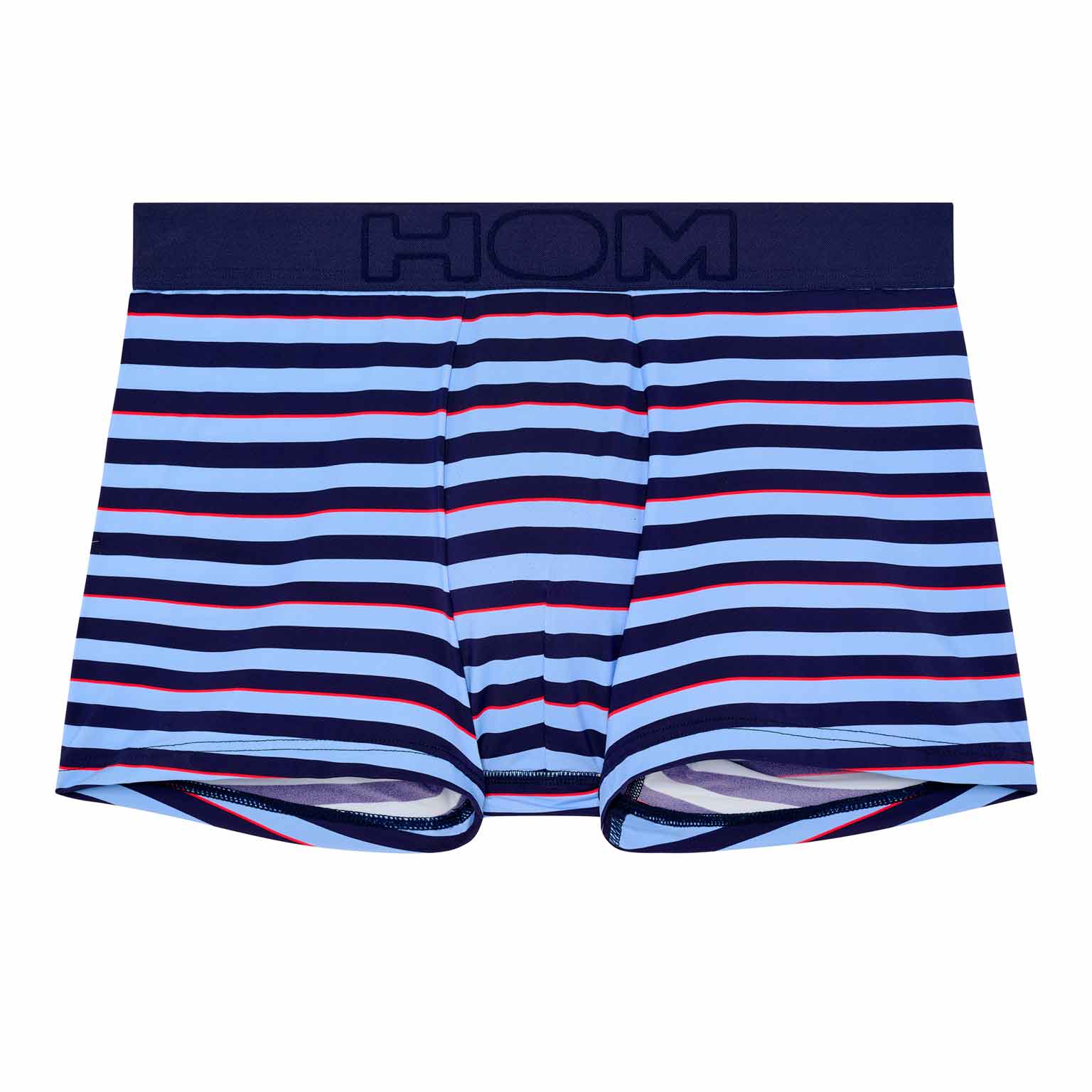 The HOM Atlantic boxer briefs bring a bold nautical look with clean navy stripes in blue and red, inspired by the world of sea and sailing. Made from smooth, lightweight microfiber, they feel soft on the skin and keep their shape beautifully. The discreet inside front elastic provides comfortable support, while the sheer veil finish at the leg hem helps prevent riding up and keeps the fit refined. Finished with a seamless HOM waistband and a detachable care label for extra comfort.