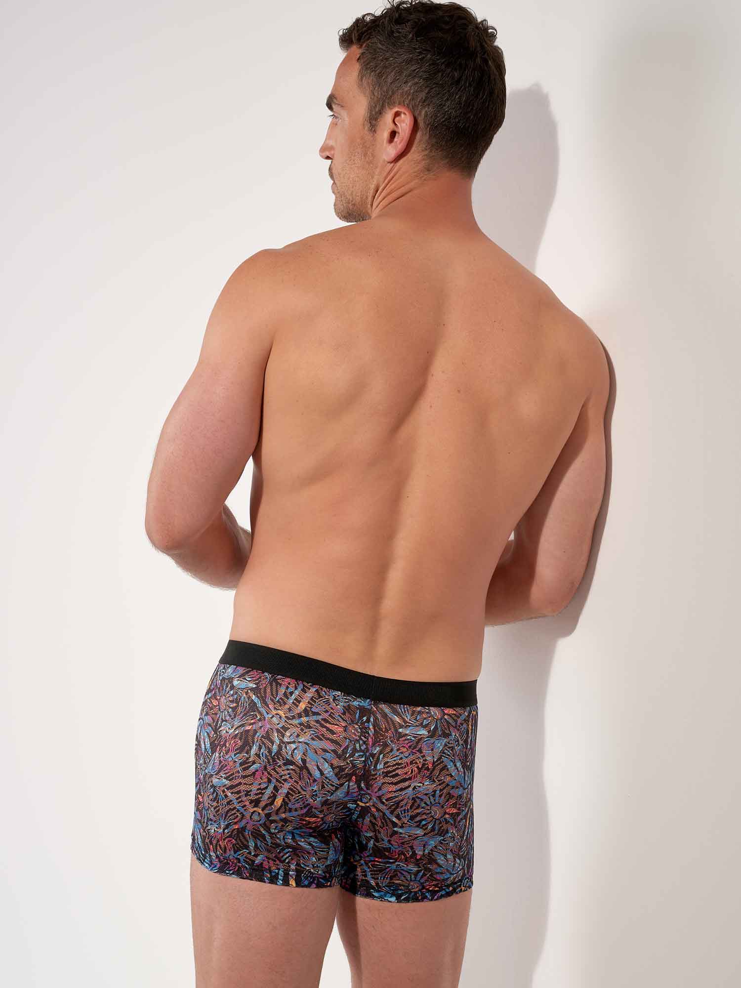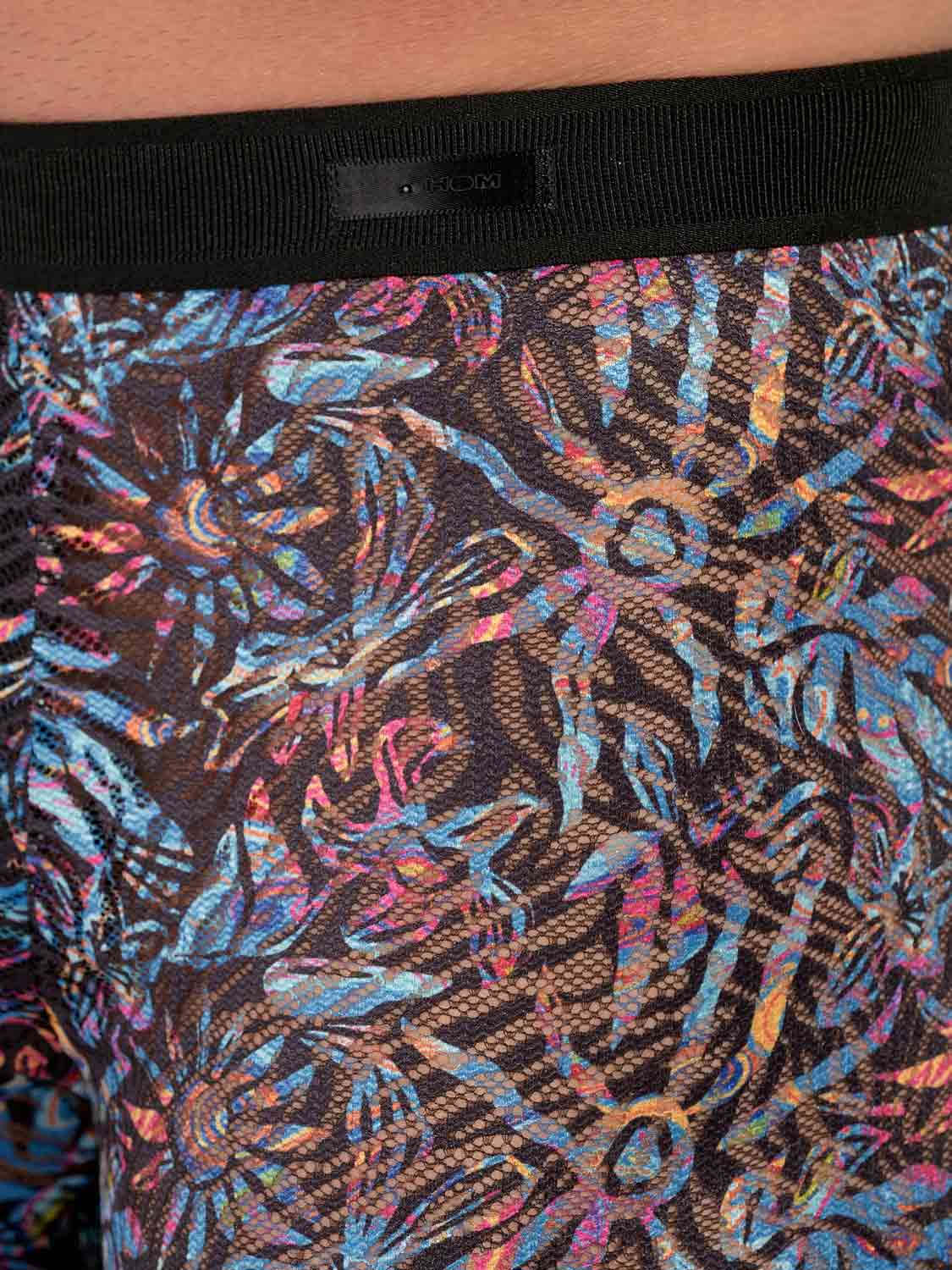 The HOM Biscayne boxer briefs bring tropical heat to the Temptation collection, crafted in refined lace that feels light, soft and irresistibly sensual on the skin. The black base comes alive with vivid, exotic florals and sun-inspired motifs, creating a striking contrast that radiates colour while remaining undeniably classy. Thoughtful details make all the difference, an inside front elastic shapes the fit and keeps everything perfectly in place, while an elasticated insert at the leg hem helps prevent riding up for confident comfort all day or night. This is more than underwear, it’s a statement of bold style with an elegant finish.