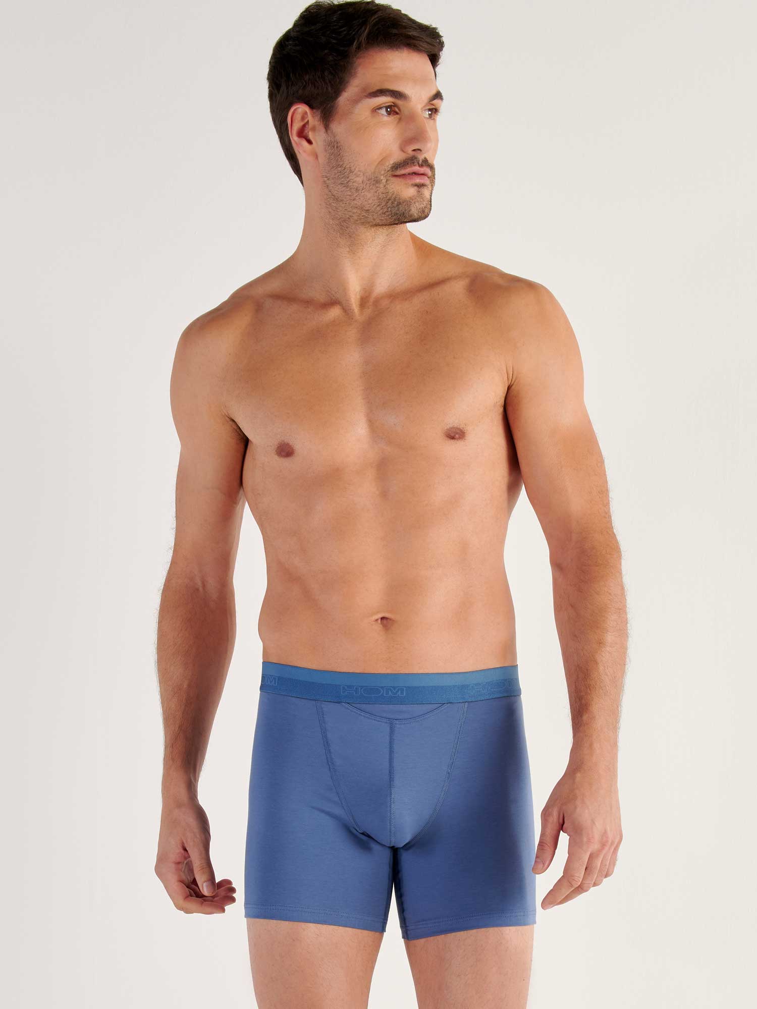 De HO1 Original - Long Boxer voor het beste draagcomfort en grootste gemak van HOM. De boxer heeft langere pijpen dan de reguliere boxer brief en is uiteraard uitgevoerd met de horizontale opening (gulp) en gemaakt van een mix van modal en katoen voor een zachte touch. Katoenmodal ademt goed en drijft vocht perfect af door de toevoeging van modal. De stof is gemakkelijk te reinigen en zeer bestendig tegen slijtage door wrijving. De gemerceriseerde heupband geeft een licht glanzend effect voor een luxe uitstraling en heeft het HOM logo in ton sur ton.
