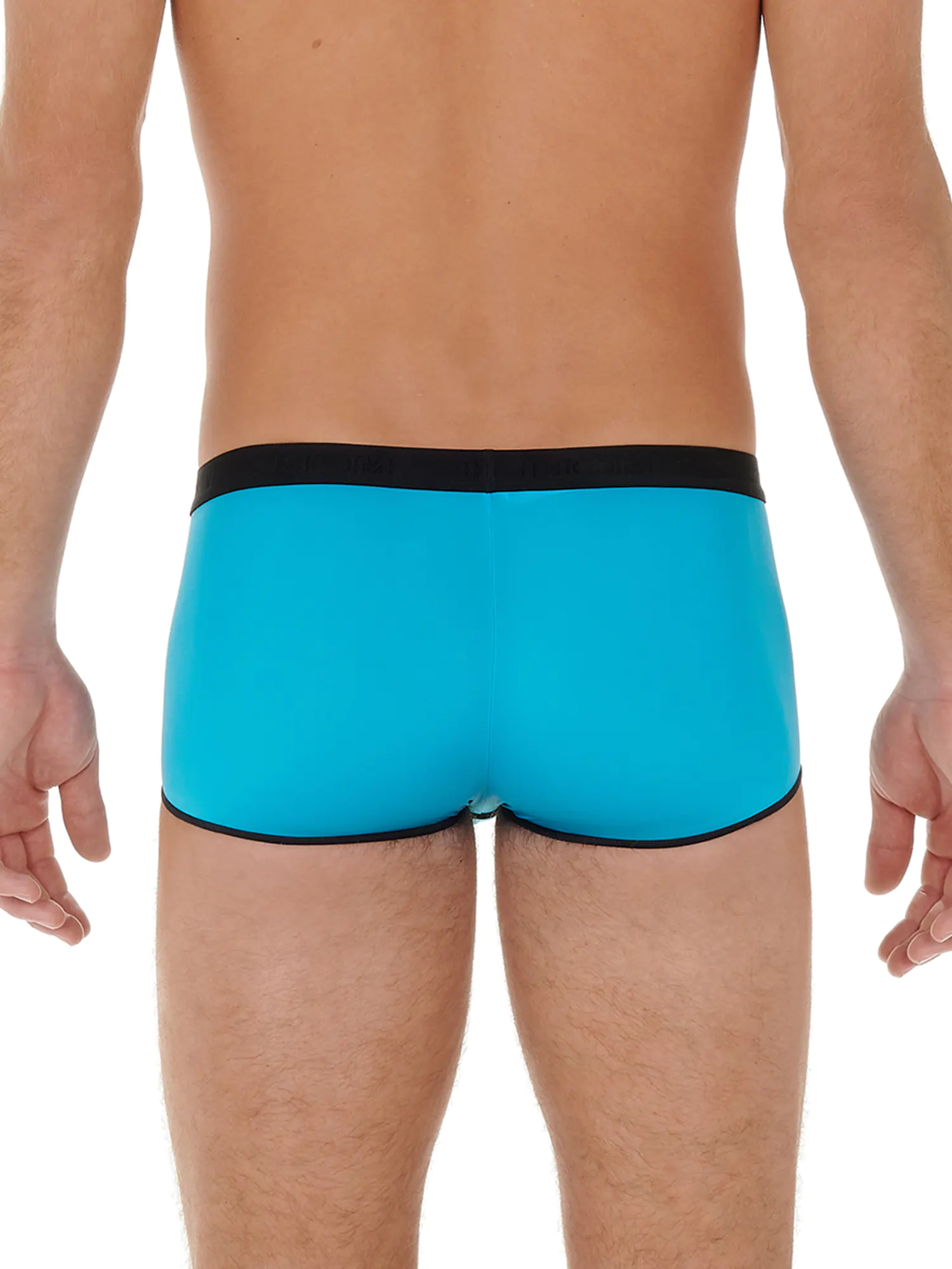 De Trunk HO1 - Plume Up is een plumes trunk met een horizontale opening! De Plumes is gemaakt van een zachte en lichte microfiber voor ultiem draaggenot. Deze unieke versie is tijdelijk verkrijgbaar in de effen kleuren blauw, rood, zwart en oranje. De shorts zijn uitgevoerd met smalle lijnen in een contrasterende kleur waardoor ze een moderne retro look hebben. Naast de Horizontale Gulp hebben deze trunks ook een "push-up"-pouch aan de voorzijde, die de ondersteuning verstevigd voor extra draagcomfort en de mannelijke anatomie subtiel benadrukt. De elastische tailleband is wat breder uitgevoerd dan bij de reguliere plumes met het HOM logo in de band.