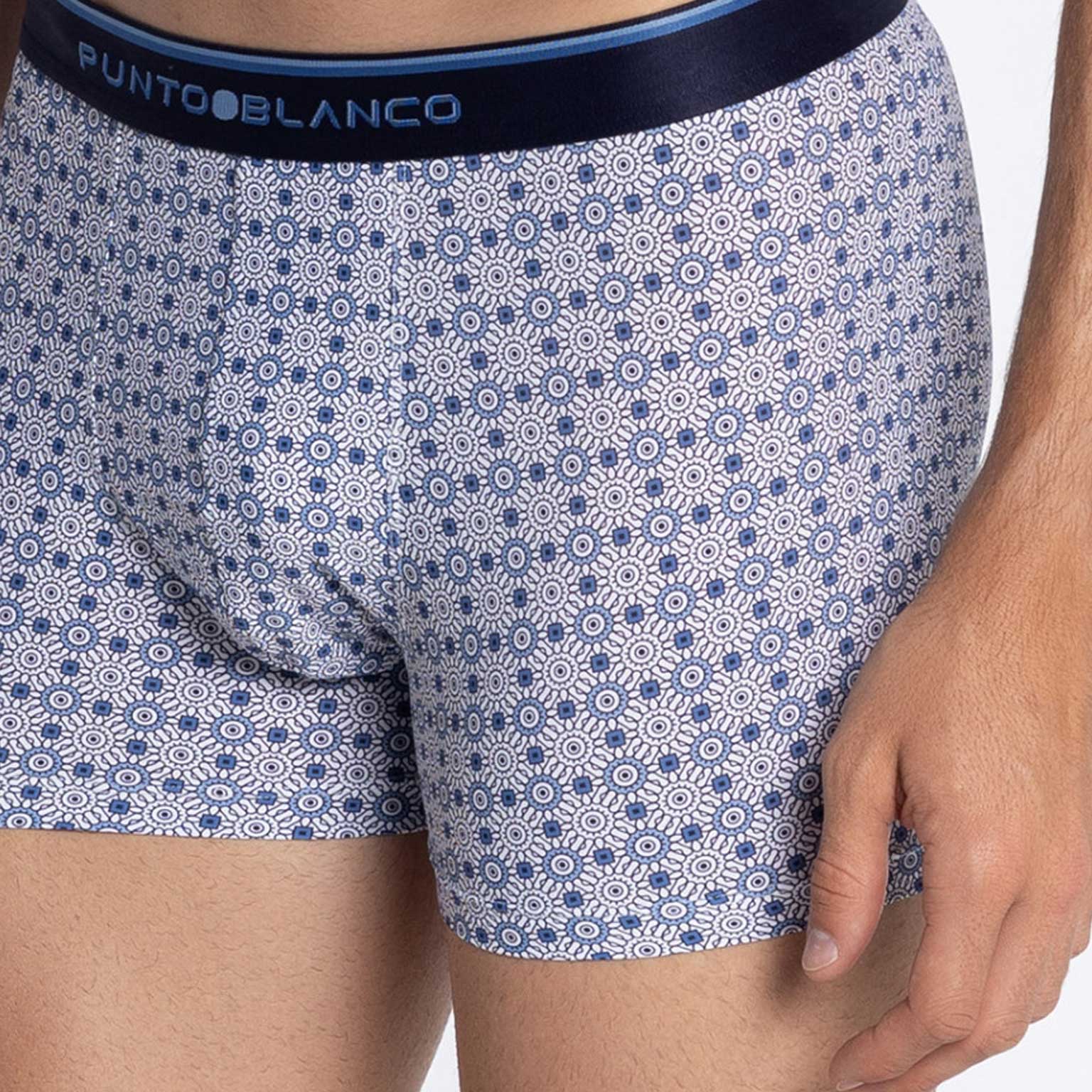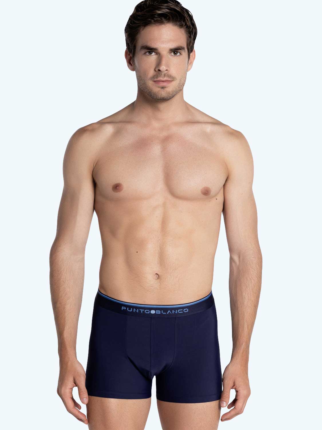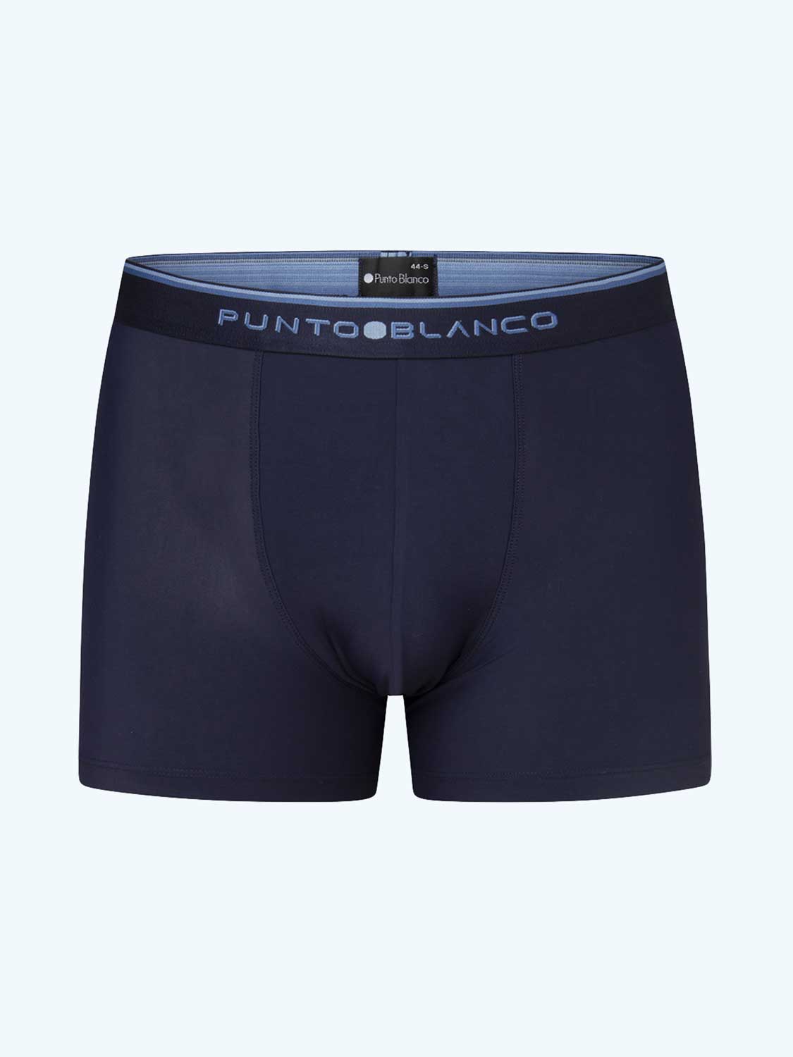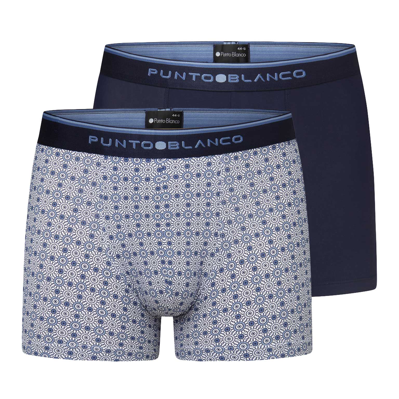 Combi-pack met 2 boxer briefs van Punto Blanco gemaakt van een zeer zachte microfiber. De boxers zijn uitgevoerd in effen marine blauw en lichtblauw met een geometrische print. Microfiber is glad en flexibel en voelt aan als een tweede huid, daarnaast drijft het vocht perfect af waardoor microfiber ook graag gedragen wordt tijdens het sporten, zonder dat het op de huid gaat schuren.. De merknaam van Punto Blanco zien we gecentreerd terug op de elastische heupband, die gemaakt is van katoen zodat deze comfortabel op de huid ligt.