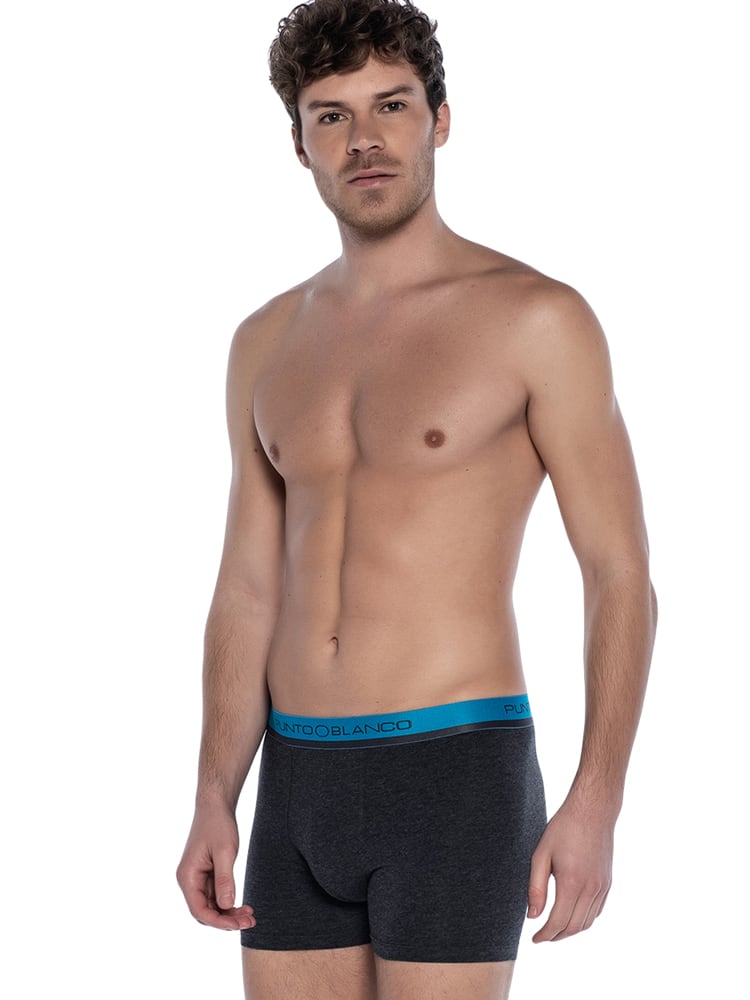 De Urbanly is een multi-pack met 2 boxers briefs van Punto Blanco. De boxers zijn gemaakt van biologisch katoen, waardoor er geen pesticiden zijn gebruikt tijdens de productie. De boxers zijn geschikt voor iedere man die graag natuurlijke stoffen draagt. Door de 93/7 verhouding blijft de pasvorm langer behouden en sluit deze beter aan op het lichaam voor het ultieme draagcomfort. De boxers zijn uitgevoerd in de uni kleuren antraciet en melange grey, met het Punto Blanco logo en contrastrerend blauw op de heupband.