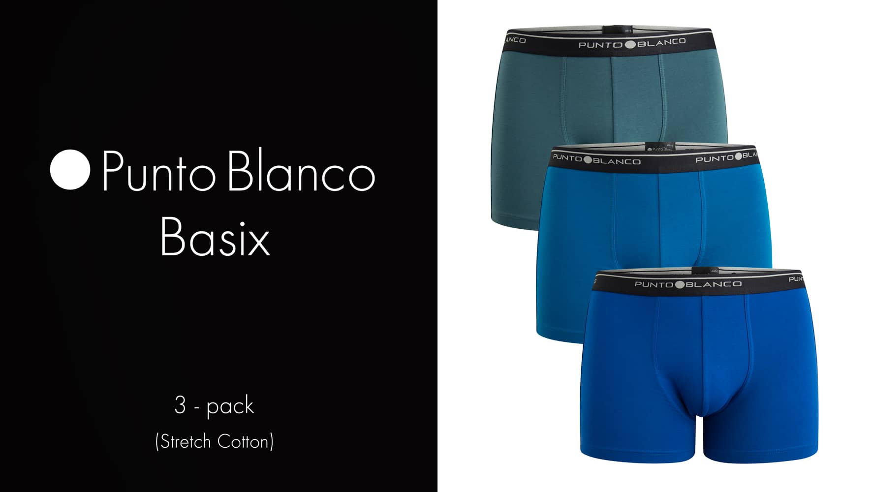 De Basix serie staat voor eenvoud; goed ondergoed en voordelig geprijsd. De Basix zit al jaren in het assortiment van Punto Blanco en heeft zichzelf dan ook al overtuigend bewezen. Met de Basix Boxer Briefs koop je een goede degelijke boxer, geschikt voor alledaags gebruik. De Basix boxers zijn gemaakt van 93/7 stretch katoen voor een comfortabele fit die langer behouden blijft. Dit voordeelpack beschikt over 3 boxers in diverse kleurcombinaties met een contrasterende elastische heupband met daarop het Punto Blanco logo rondom. Het logo is aan de voorzijde niet gecentreerd.