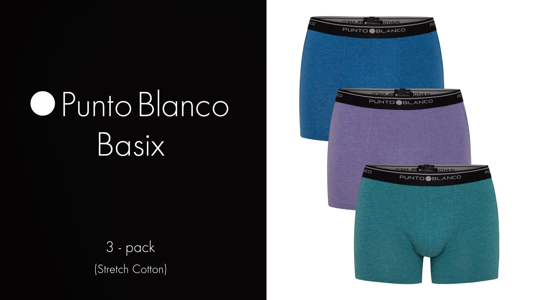 De Basix serie staat voor eenvoud; goed ondergoed en voordelig geprijsd. De Basix zit al jaren in het assortiment van Punto Blanco en heeft zichzelf dan ook al overtuigend bewezen. Met de Basix Boxer Briefs koop je een goede degelijke boxer, geschikt voor alledaags gebruik. De Basix boxers zijn gemaakt van 93/7 stretch katoen voor een comfortabele fit die langer behouden blijft. Dit voordeelpack beschikt over 3 boxers in diverse kleurcombinaties met een contrasterende elastische heupband met daarop het Punto Blanco logo rondom. Het logo is aan de voorzijde niet gecentreerd.