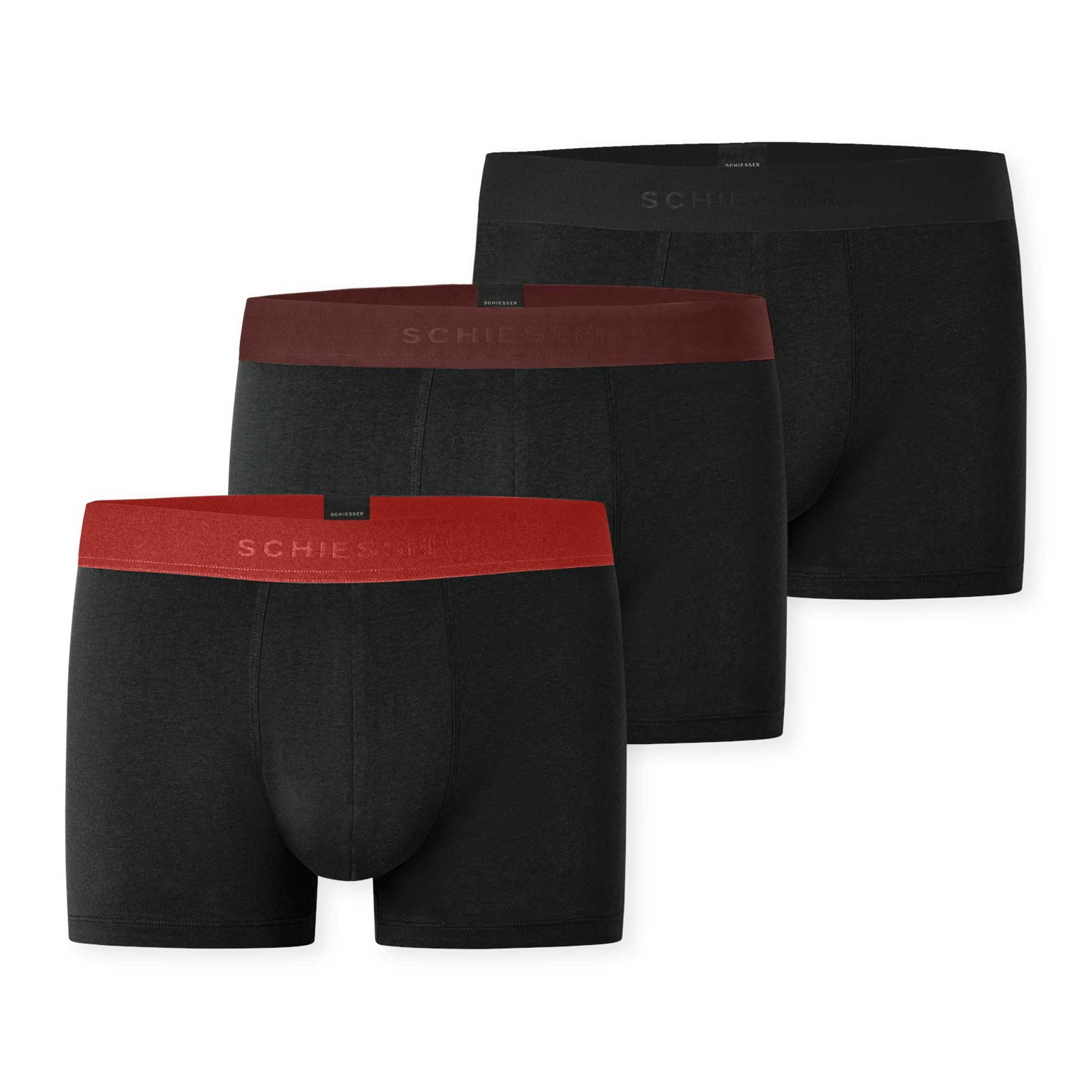 Deze praktische 3-pack boxershorts uit de bekende 95/5 serie van Schiesser is een uitstekende keuze voor elke man die houdt van comfortabele basics. De shorts zijn gemaakt van zacht biologisch stretch katoen, waardoor ze soepel aansluiten en de pasvorm goed behouden blijft na wassen meerdere keren dragen. De stevige tailleband in contrasterende kleur zit prettig op de huid en biedt goede ondersteuning, ook bij dagelijks gebruik. Dankzij de betrouwbare Schiesser-kwaliteit en aantrekkelijke prijs is dit een onmisbare aanvulling op iedere ondergoedlade.