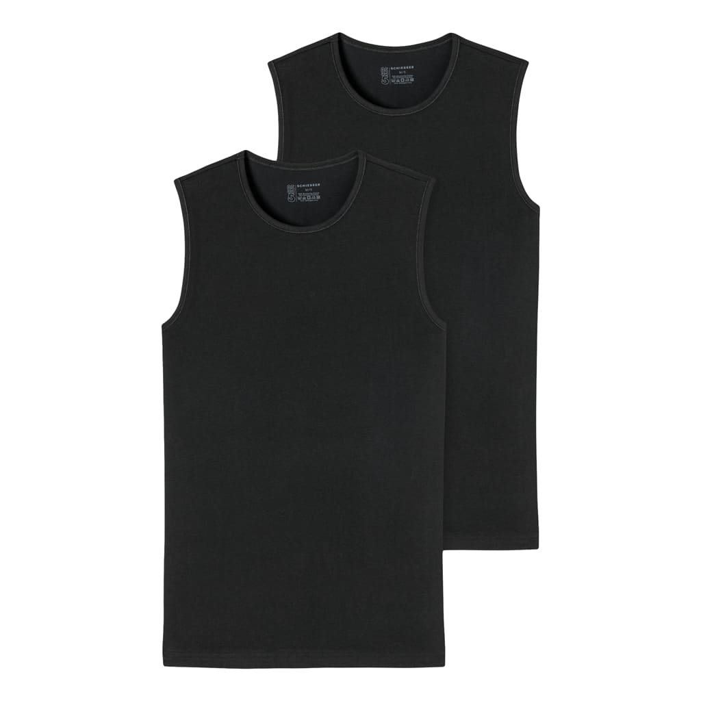 2 Tanktops voor de man in een dubbelpack, uit de populaire SCHIESSER-serie "95/5". De tanktops hebben een ronde hals en zijn gemaakt van 95% natuurlijk biologisch katoen en 5% elastan, Ze zijn gebreid in een perfect passende elastische single jersey kwaliteit. De 95-5 tantkops kun je wassen op een temperatuur tot 60 graden.