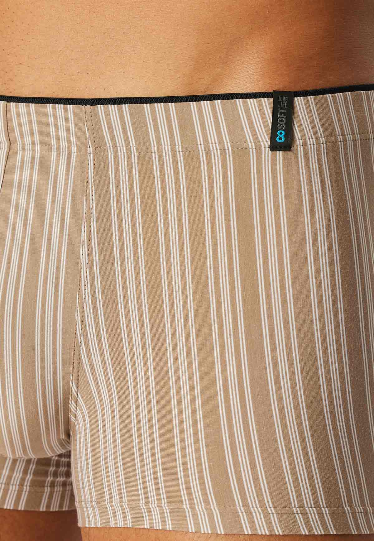Deze gestreepte boxeshort voor heren komt uit de Long Life Soft-serie van Schiesser en biedt optimaal comfort voor elke dag. De combinatie van modal en polyester zorgt voor een duurzame afwerking met minder pilling, terwijl de stofmix een perfecte pasvorm garandeert en heerlijk zacht aanvoelt. Het gladde oppervlak voelt aangenaam op de huid en blijft mooi, zelfs na vele wasbeurten. De binnenband vormt een stijlvol detail. Voor mannen die waarde hechten aan kwaliteit, duurzaamheid en klassiek design.