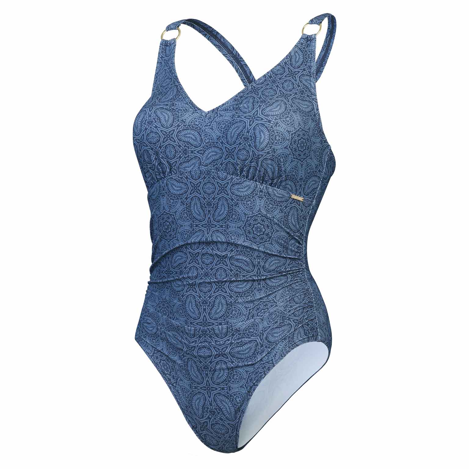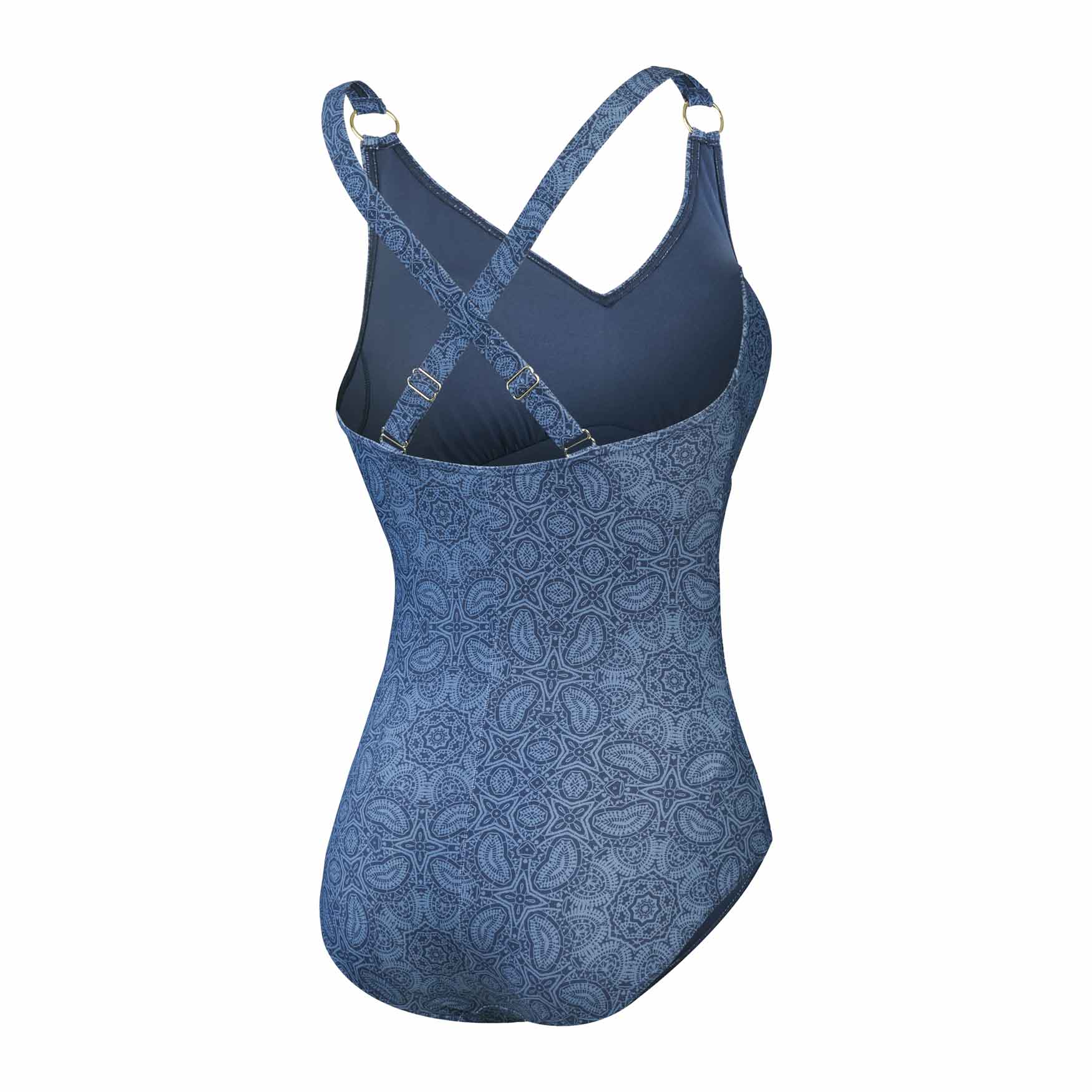 Geniet van een heerlijke vakantielook met dit shaping badpak. Het badpak is uitgevoerd met een V-hals voor een diepe decolleté. Door het shaping effect wordt de vrouwelijke vorm van het lichaam extra benadrukt en kun jij je zeker voelen. Het badpak heeft uitneembare padding voor de borsten, voor wanneer je voldoende hebt aan de verweven borstondersteuning. Met de verstelbare schouderbandjes breng je de cup perfect op maat. Zo kun jij vol vertrouwen genieten van je vrije dagen aan het zwembad.