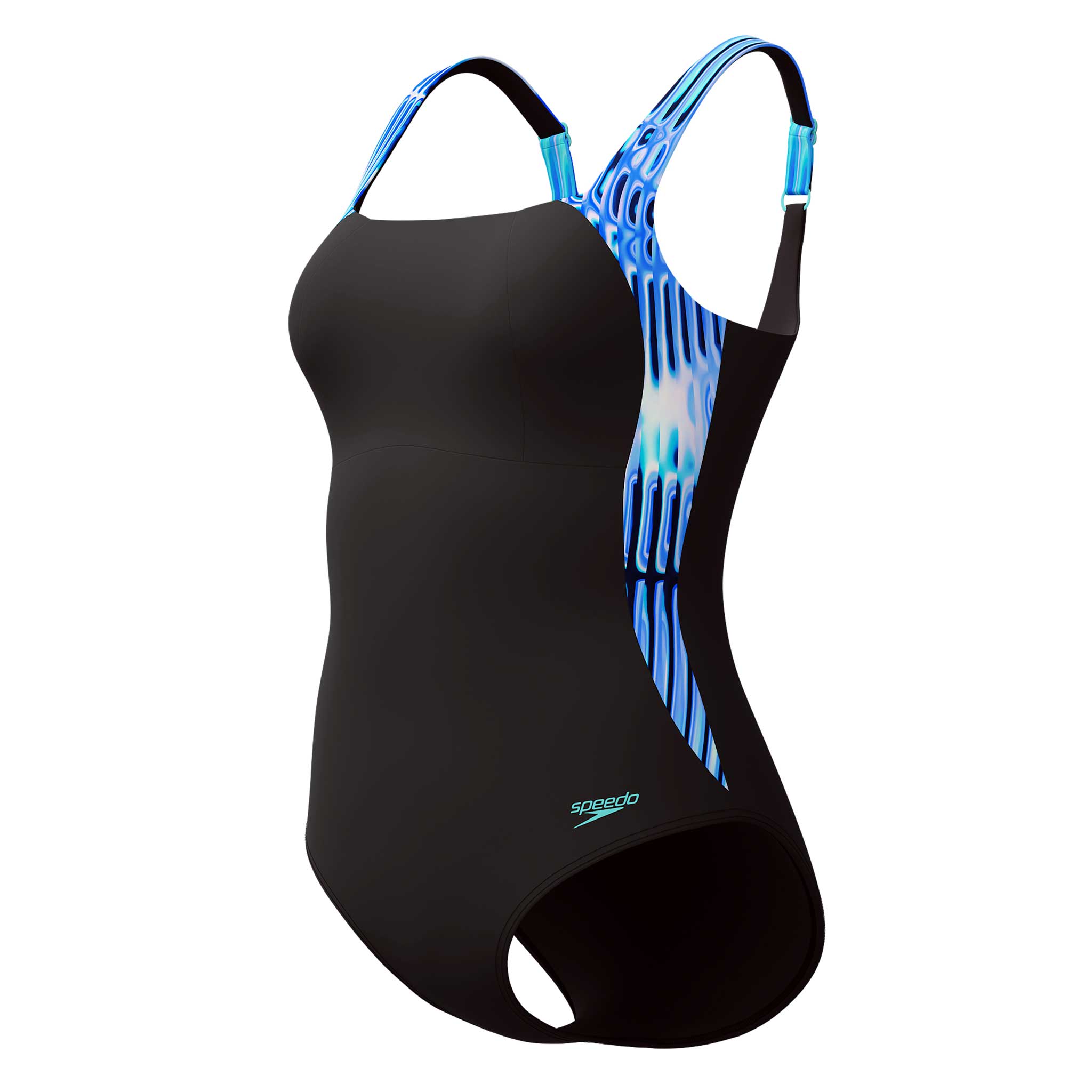 De Lunalustre is een sculpture badpak uit de Shaping collectie van Speedo. Het badpak oogt sportief met de rechte neklijn en sluit perfect aan op het lichaam. De Lunalustre accentueert de vrouwelijke rondingen voor een mooi gestroomlijnd figuur, zonder in te leveren op draagcomfort. Het badpak biedt een medium borstondersteuning verweven in de stof en heeft een all-over shaping effect. De verstelbare schouderbandjes zorgen ervoor dat je het badpak perfect op maat kunt brengen. De sculpture stof gaat tot 2x langer mee dan standaard badkleding wanneer je in chloor zwemt, waardoor je langer van je badpak kunt genieten.